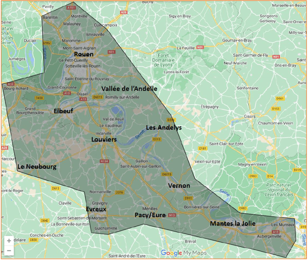 Basée près de LOUVIERS (axe A13), DIMEX intervient sur les villes de VERNON, GAILLON, VAL DE REUIL, ELBEUF, ROUEN, LES ANDELYS, EVREUX, LE NEUBOURG, MANTES et leurs alentours.